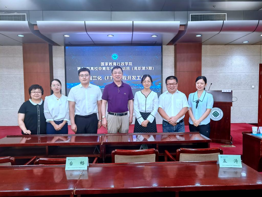 7月28日,受国家教育行政学院邀请,由理事长曹勇安、副院长张振笋、教务处副处长潘宇、信息工程系主任刘春媛、护理系负责人郭玲玲、管理工程系副主任张洪岩组成的FT课程研发团队一行赴北京,为国家教育行政学院第六十六期全国高校中青年干部培训班(高职第九期)学员开展“四真三化(FT)课程开发工作坊”,这是国家教育行政学院第一次以工作坊形式开展课程开发研修活动。