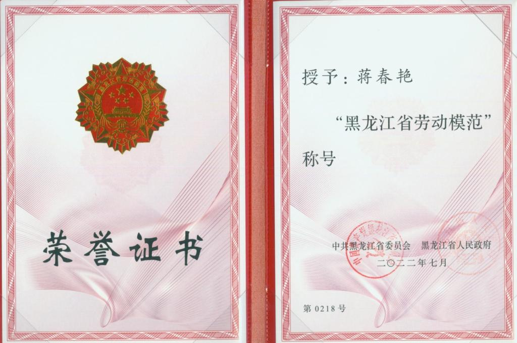 蒋春艳荣获全省第十三届劳动模范殊荣