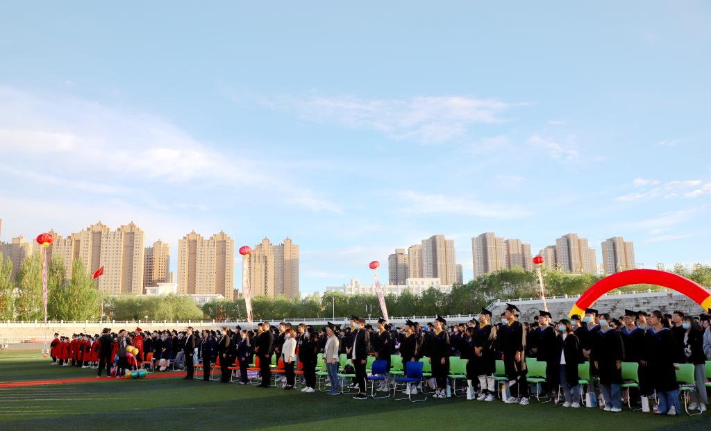 6月1日18时30分,学校2022届学生毕业典礼在体育场草坪场地隆重举行。雨过天晴,碧绿球场,彩旗招展,音乐悠扬,欢声笑语,情意融融。