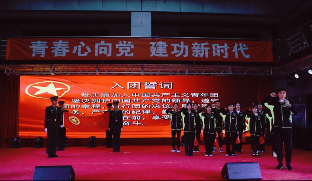 会上,学长教官团成员展开团旗,随后伴奏声响起,全体师生重温了入团誓词,合唱共青团团歌《光荣啊,中国共青团》,大会在庄严的团歌声中圆满落下帷幕!