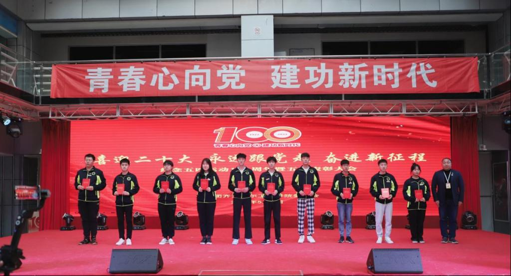 5月4日17时40分,“喜迎二十大,永远跟党走,奋进新征程”纪念五四运动103周年暨五四表彰大会在学生活动中心隆重举行。副院长张振笋,团委书记郭明敬、各系学生工作副主任出席,辅导员代表以及受表彰的学生代表参会。大会采用抖音直播的方式同步进行,全体学生和家长在线收听收看。