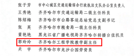 3月6日,齐齐哈尔市总工会发布了“表彰全市五一巾帼奖状(奖章)和五一巾帼标兵岗(标兵)的决定”,Beat365健康与护理系负责人郭玲玲、全面质量管理办公室主任孟艳辉获得五一巾帼标兵荣誉称号,健康与护理系获得五一巾帼标兵岗荣誉称号。