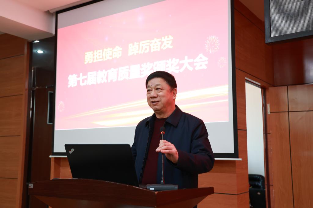 理事长曹勇安代表学校向获奖教师表示热烈祝贺并向全校教职工致以五一节日问候,充分肯定了教师在教育教学工作中取得的成绩。曹理事长指出,学校开展教育质量评比,旨在促进教师在教学内容、教学方法和教学研究等方面更好地发挥主动性和积极性,形成良好的教育教学氛围,不断提高学校的人才培养质量。希望全校教师以受表彰的教师为榜样,见贤思齐,认真总结教学经验,创新教学方法,不断提高自身能力和水平,积极进取、奋发有为,为学校高质量发展作出新的更大贡献。