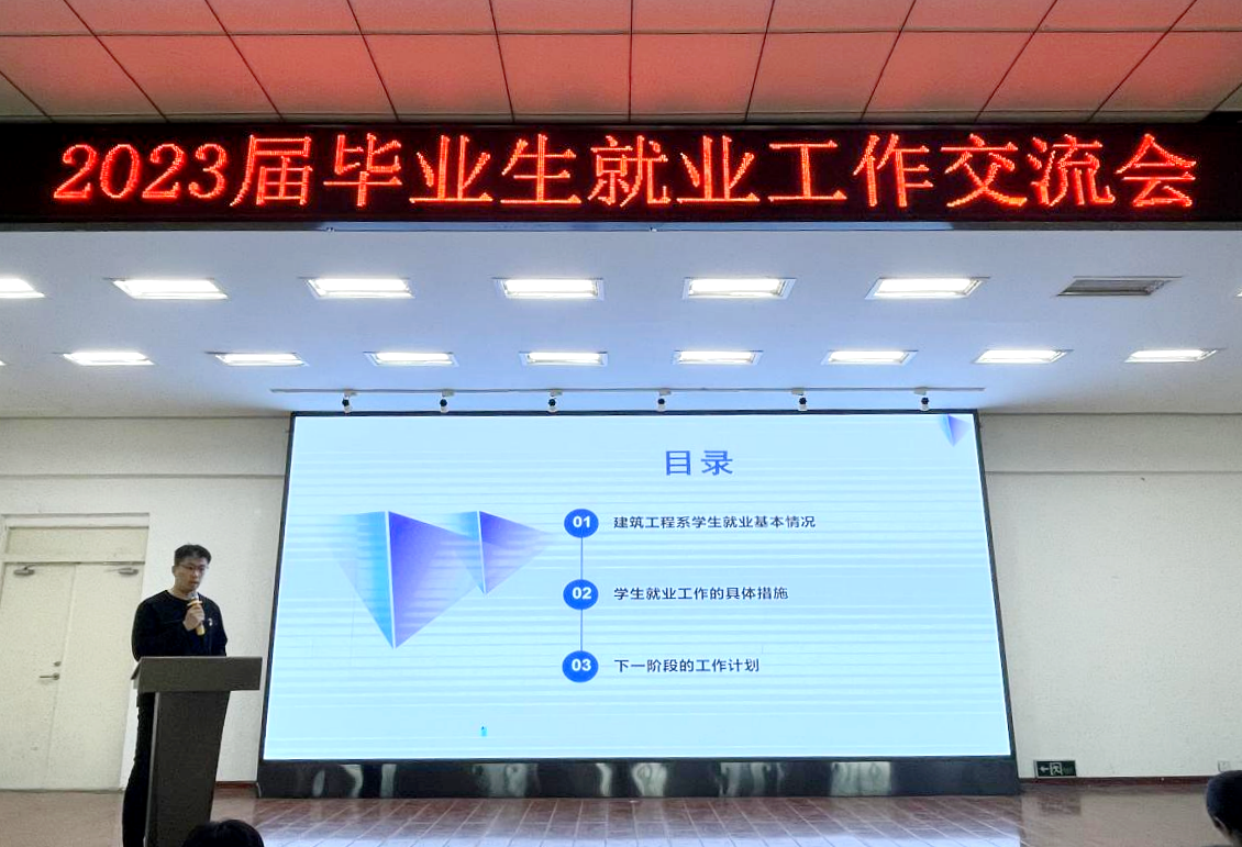 建筑工程系副主任刘贤鹏从访、请、师、友四个方面介绍了毕业生就业工作落实情况。他用“五项措施”和“六条要求”保障毕业生就业工作切实落地,以“抢前抓早、主动作为”为目标,抓好前期谋划和后期落实。