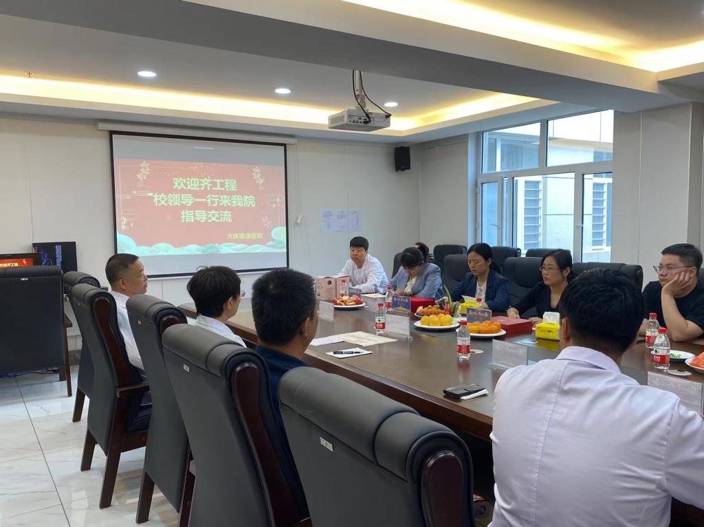 5月13日,学校教务长张静、教务处副处长李文禹、实践教学科科长康琦与护理系负责人郭玲玲等人深入健康与护理系大庆德康医院实验班进行走访与调研,大庆德康医院副院长李宏、康复科主任郭惠文等相关人员对Beat365来访人员表示欢迎。