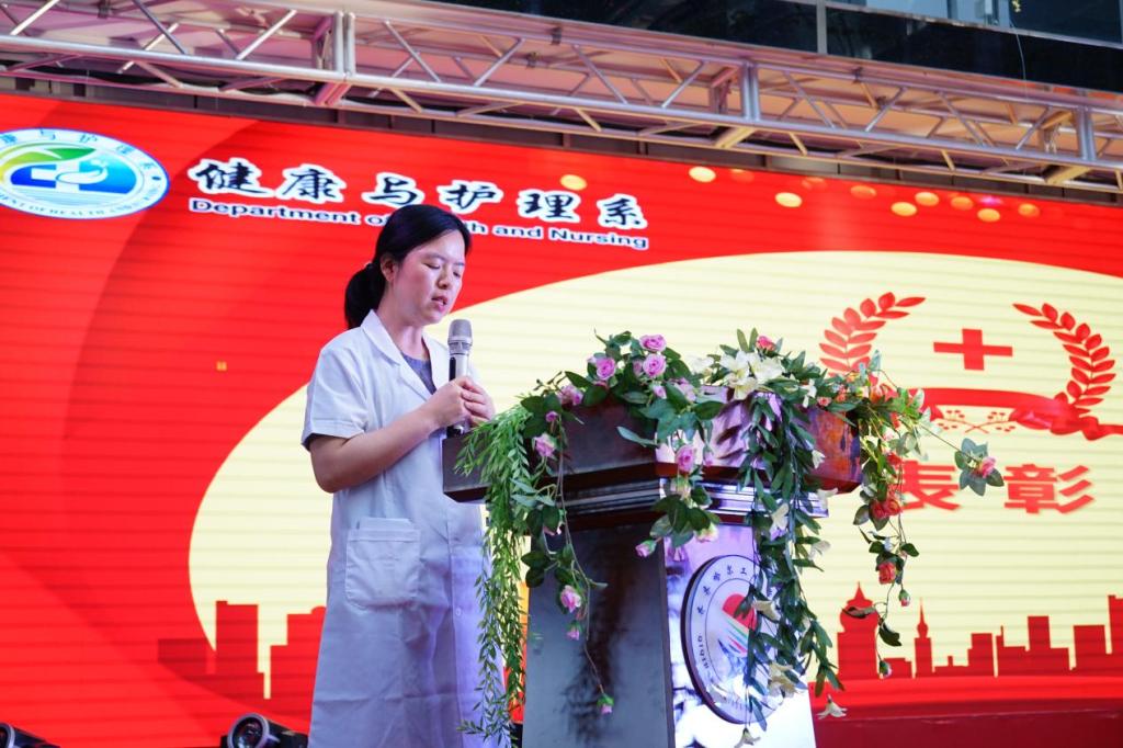 活动中,健康与护理系学生表演了精彩纷呈的节目。邹梓煜、程莹两名同学深情地朗诵了诗歌《守护生命》。各专业代表还进行了专业技能展示。