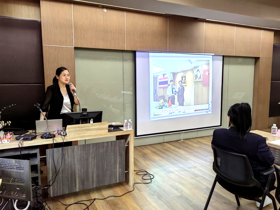 冯俊英参赞介绍了驻泰大使馆教育组参与建设的孔子学院,以及中文国际教育、留学生教育、国际合作与交流等情况。