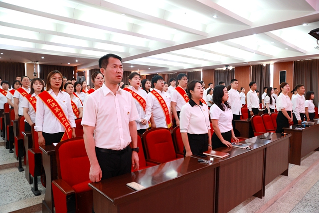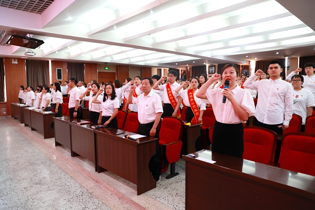 组织部负责人张苗带领全体党员重温入党誓词,表达了为党的事业奋斗终身的坚定信念。