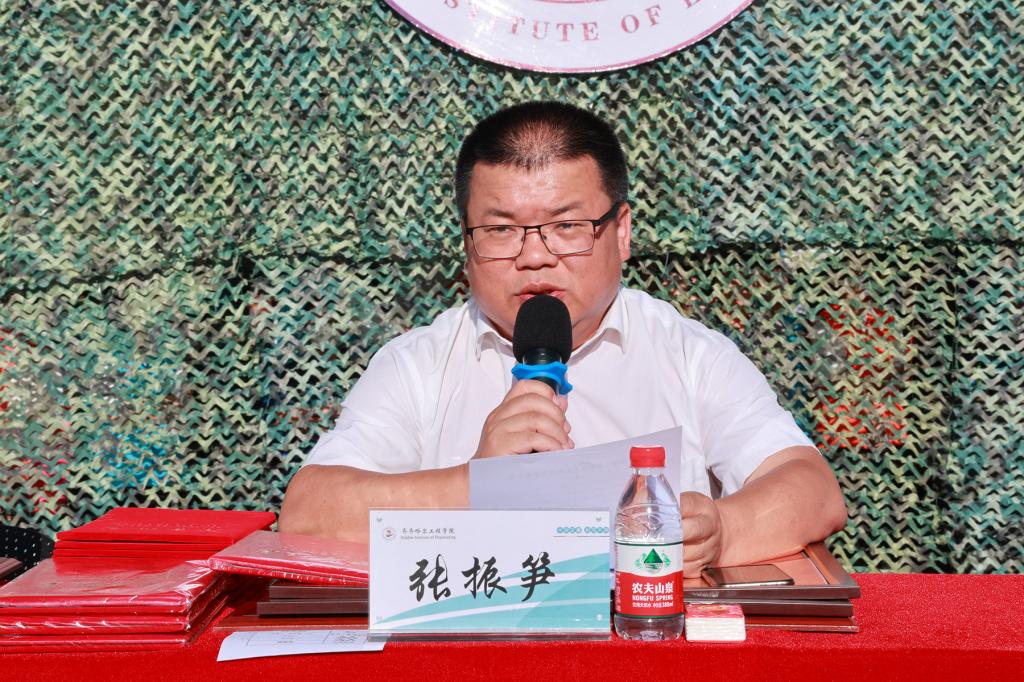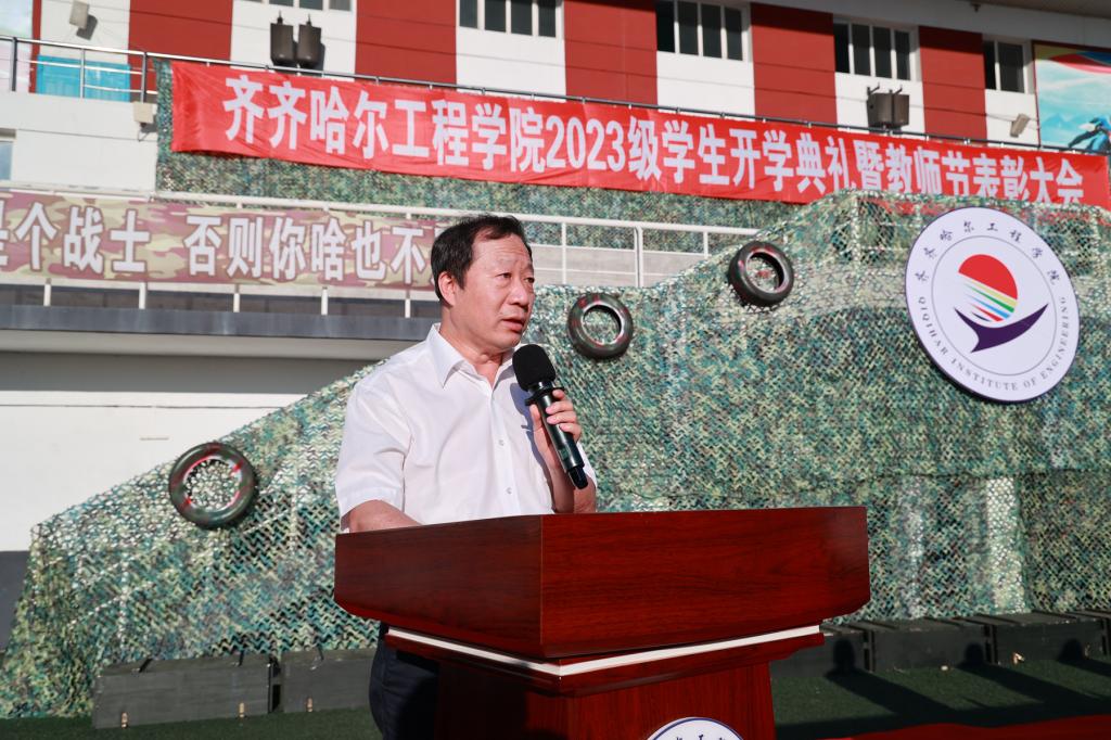 党委书记郭伟东宣读《关于表彰2023级学生军训先进集体及先进个人的决定》,对在本次军训工作中取得突出成绩的先进连队和先进个人予以表彰。机电工程系一营一连等10个连队被评为2023级学生军训优秀参训连队;建筑工程系三营十六连等6个集体被评为2023级学生军训内务检查先进集体;774名学生分获各项个人荣誉。
