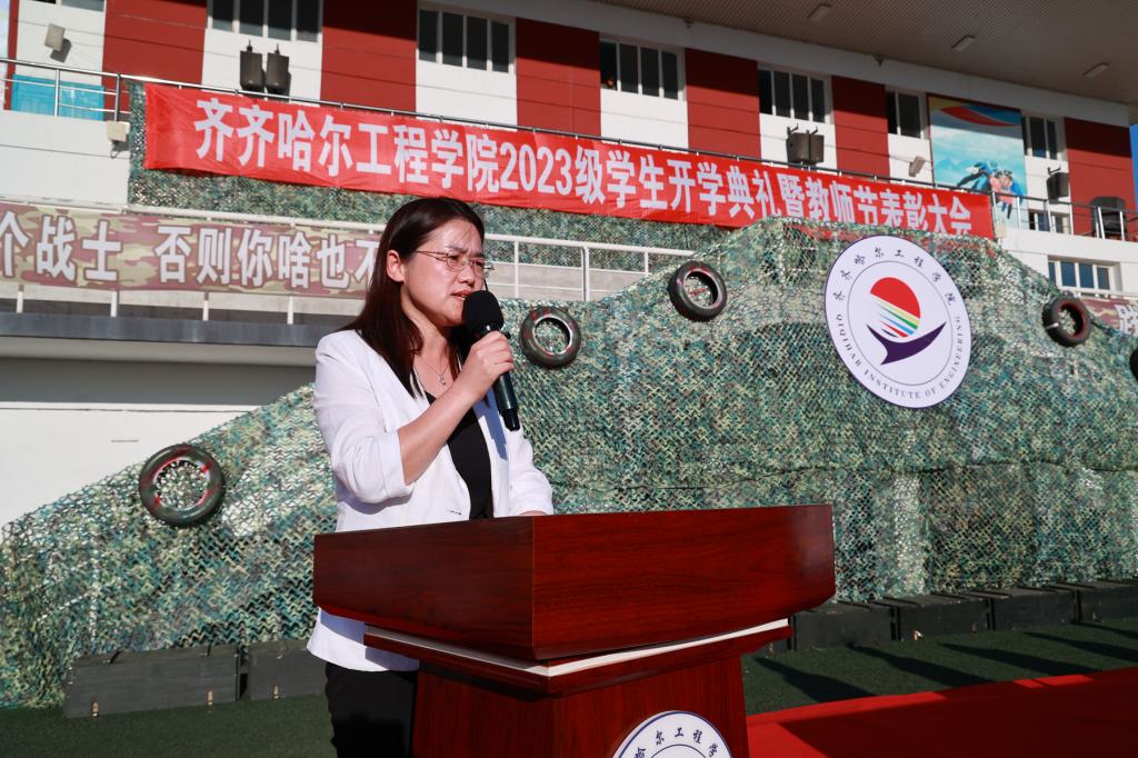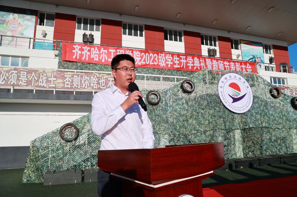 9月9日下午,2023级学生开学典礼暨“躬耕教坛,强国有我”教师节表彰大会在体育场举行,院长曹然彬、党委书记郭伟东、党委副书记张振笋、副院长白雪、副院长张静、院长助理陈景鑫及党委委员王丹、校务委员孟艳辉、理事会理事刘玉洁出席活动并在主席台就座。合作企业代表、各系领导、教师及全体2023级普本新生参加本次会议。