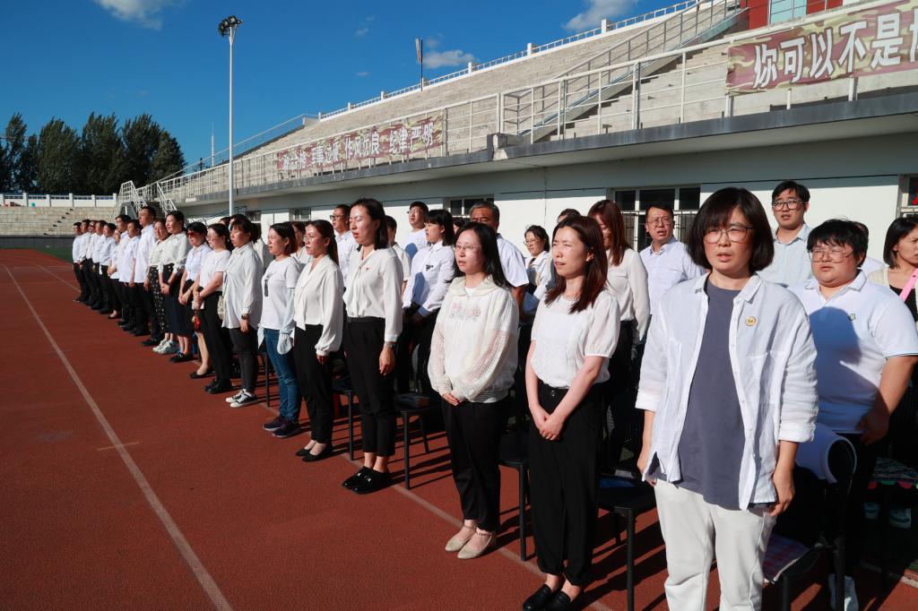 全体师生齐唱国歌。