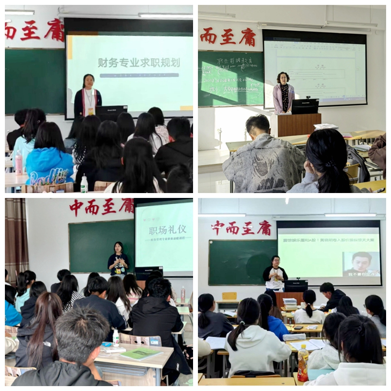 近日,管理工程系财务管理专业及互联网金融专业在二号教学区1208等教室开展了会计职业规划、职场礼仪、“你的未来不是梦”讲座等具有专业特色的职业前瞻课程。课程由专业教师主讲,两专业2023级学生参加。