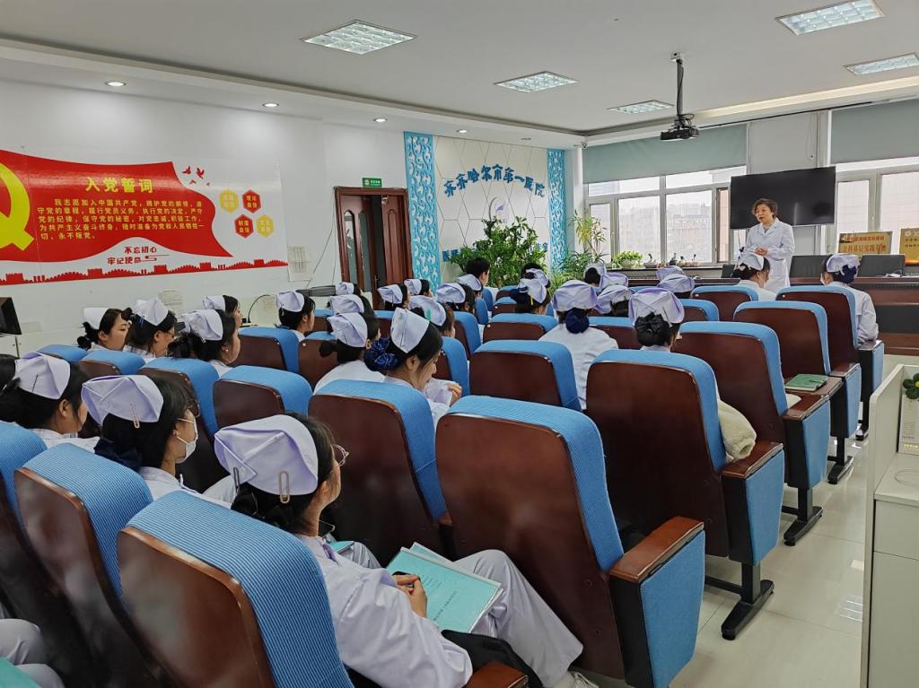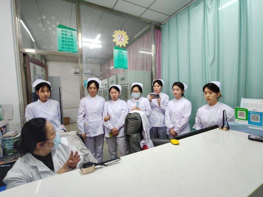 随后,学生每10人一组,由四名助教老师分别为学生演示如何进行妇保档案的建立,并强调录入系统中的所有的数据一定要真实,并轮流带领学生参观预防保健科,讲解妇女特殊时期的保健指导及常见健康问题的护理、产后访视的注意事项。