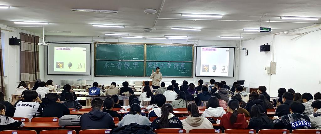 张剑在二号教学区2508室开展第二场数学建模竞赛培训。张老师重点介绍了东北三省数学建模竞赛,包含了竞赛的基本信息、参赛得奖情况,并展示了近几年的真题,评奖标准,参赛学生心得等等。