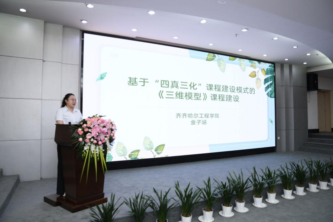 信息工程系金子涵老师以动画专业《三维模型》课程建设为例,向全体参会教师展示了“四真三化(FT)”课程建设模式的具体实践。以一名新教师成长的视角生动的展示了FT课程建设模式带来的启发和效果。她的讲解为教师们在实际教学中运用“四真三化”模式提供了有益借鉴。
