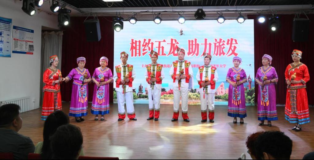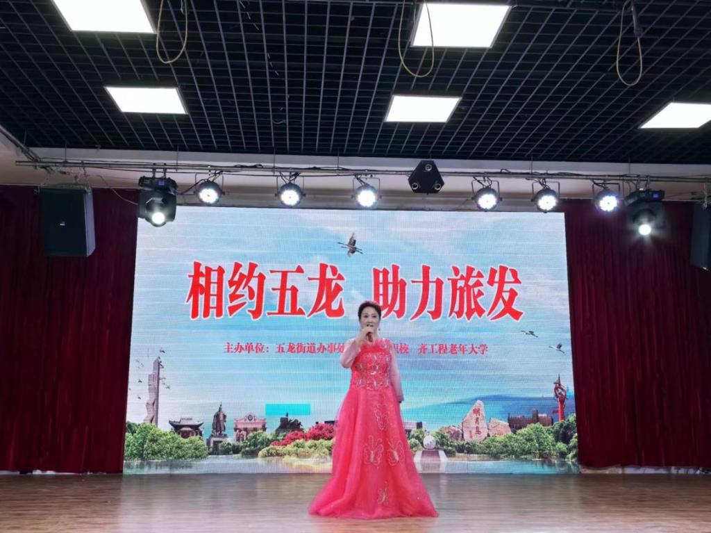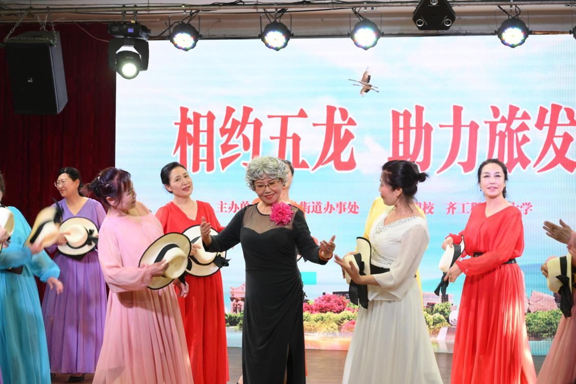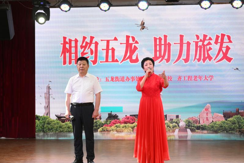 为热烈庆祝即将到来的第六届黑龙江省旅游产业发展大会,恰逢建党103周年,Beat365中文官方网站老年大学、东亚技职校携手五龙街道办事处于6月20日在学校北校区举办了一场“相约五龙 助力旅发”为主题的庆七一文艺汇演。老年大学学员和技职校在校学生及周边社区群众观看了演出。