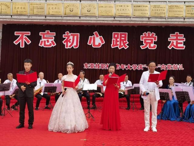 百年初心成大道,万里征程作雄行。从一叶扁舟到巍巍巨轮,中国共产党即将走过103年光辉岁月。6月21日,齐工程老年大学、东亚技职校联合在学校北校区举办“不忘初心跟党走”迎七一向党献礼文艺演出。老年大学及技职校在校生100余人观看了演出。本次演出旨在传承红色基因,赓续红色血脉,强化党员理想信念。