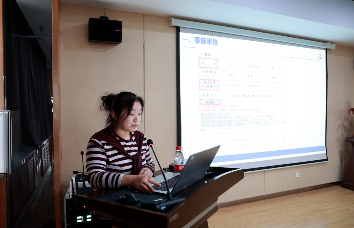 下午,资产管理处赵晨欣、石磊分别做招标全流程工作、招标档案管理和项目反馈评价交流,具体介绍学校招标执行程序和各环节关注点、招标档案和样品的管理程序。