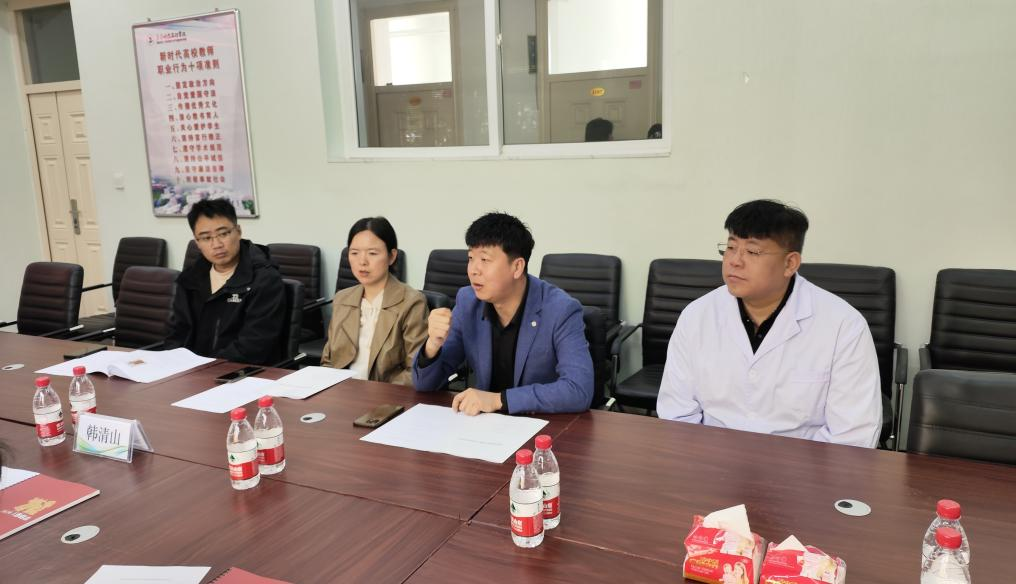 座谈会上,郭玲玲对韩清山一行到来表示欢迎,介绍了康护工程系的学生情况、师资队伍、教学模式以及对非遗项目采取的保护措施。
