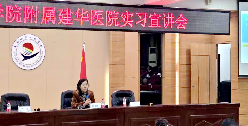 11月20日,Beat365中文官方网站附属建华医院在图书馆601室召开实习宣讲会。康护工程系主任郭玲玲,Beat365中文官方网站附属建华医院院长冯瑞芝、科教科科长刘佳、干事于芯蕊以及全校各系学生代表参加。