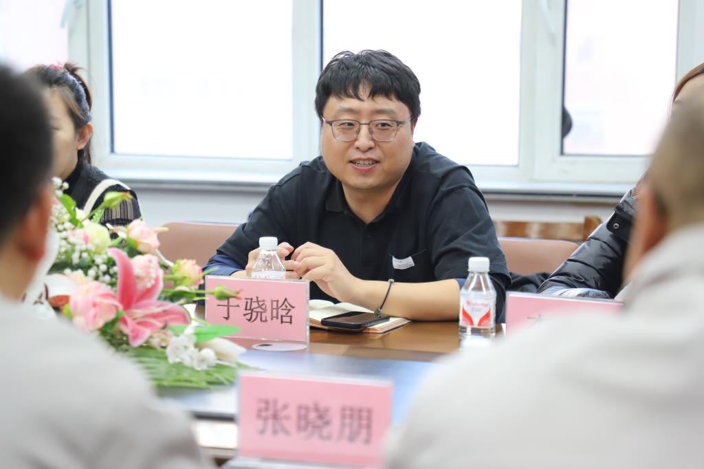 签约仪式前,校企双方在齐翔建设集团大宇建筑工程有限公司进行座谈。