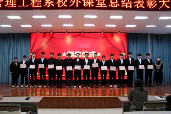 大会为获奖学生颁奖。土木222莘金铎等17名学生获优秀实践学员奖、土木223班唐剑扬等7名学生获“亮剑”精神奖、土木213班杨小川等6名学生获优秀学长奖。