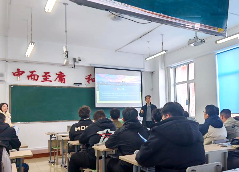 洽谈结束后,区世权、程梓钰在图书馆110召开了宣讲会。区世权通过案例和数据,向学生展示了佛山德玛特智能装备科技有限公司的企业文化、工作环境、职业发展路径以及当前的招聘岗位信息。学生认真聆听,对企业的发展和岗位需求有了更直观地了解。会后,学生围绕专业岗位、实习待遇、晋升空间等问题与企业代表进行了交流。企业代表耐心解答,现场气氛热烈。