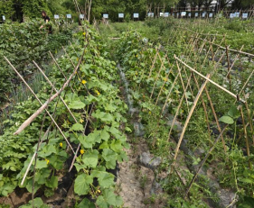 小菜园首批种植了生菜、番茄等易种蔬菜,采用轮作模式提升土地利用率。每个种植地块都立着专属认领牌,认领牌将卡通图案、诗词和童谣与种植信息相结合,整体洋溢着童趣氛围。