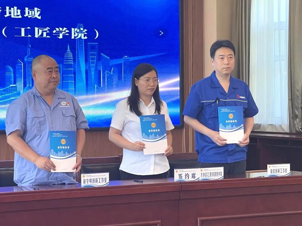 仪式上,刘微代表齐齐哈尔工程学院劳模创新工作室与齐齐哈尔和平重工集团有限公司徐守峰劳模和工匠人才创新工作室、齐重数控装备股份有限公司徐壮劳模和工匠人才创新工作室签约,组建装备制造业创新工作室联盟。