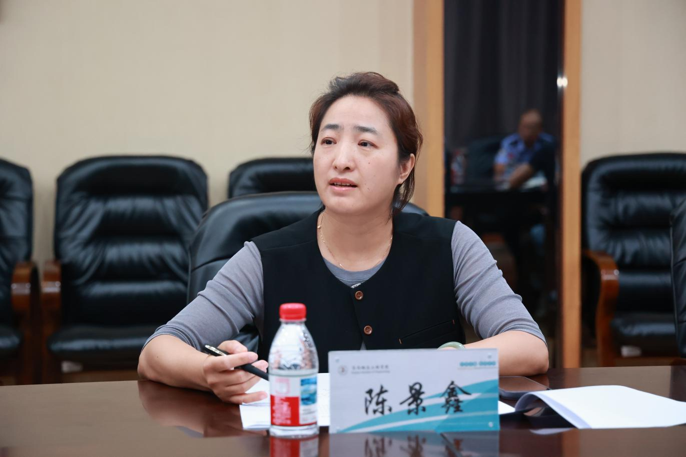 陈景鑫表示学校高度重视师生反诈宣传教育工作的开展,为进一步落实此项工作,她提出三点要求:一是要将反诈宣传教育工作纳入学生前瞻教育工作中,通过新生报到日、主题班会、集中宣讲、关注反诈公众号等途径,实现线上与线下宣传教育有机结合;二是要不断创新工作举措,加强反诈宣传教育成效,进一步增强师生反诈意识;三是要建立警校工作联络群,形成双向互通互联机制,增进双方沟通和交流,共同维护好广大师生的切身利益,营造平安和谐的教书育人环境。