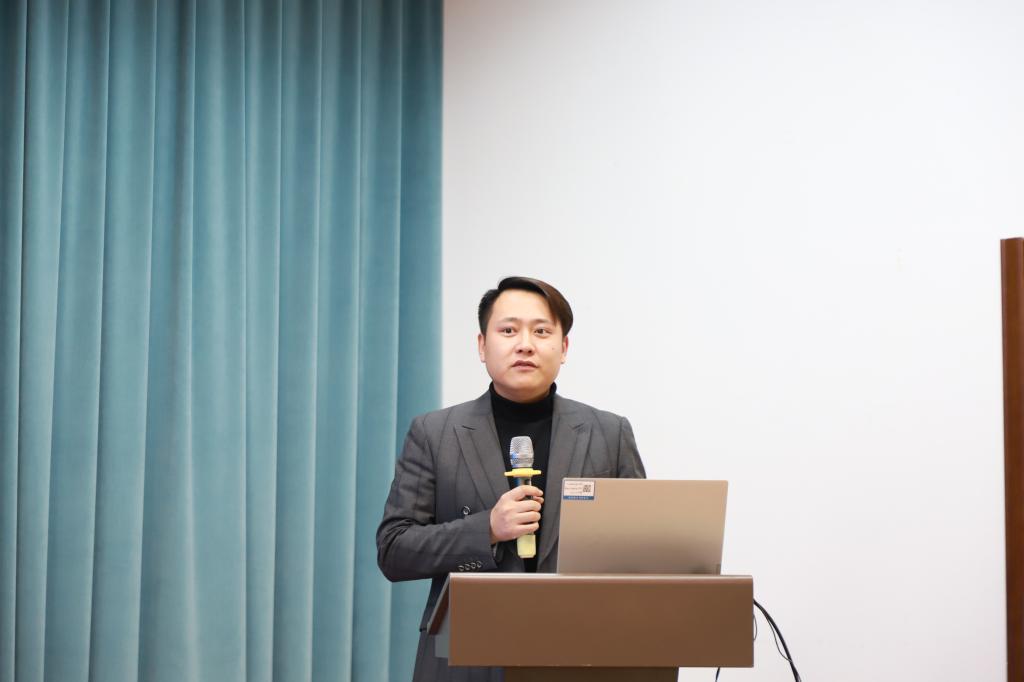 新教师代表、艺术与体育学院董学良老师发言,董学良结合来校后在学习、岗位实践中的成长体会,分享了他的教育理想和未来规划。表示,将珍惜学校提供的平台和机会,以教育家精神为灯塔,不畏艰难、勇于攀登,为建设百年老校贡献智慧与力量。