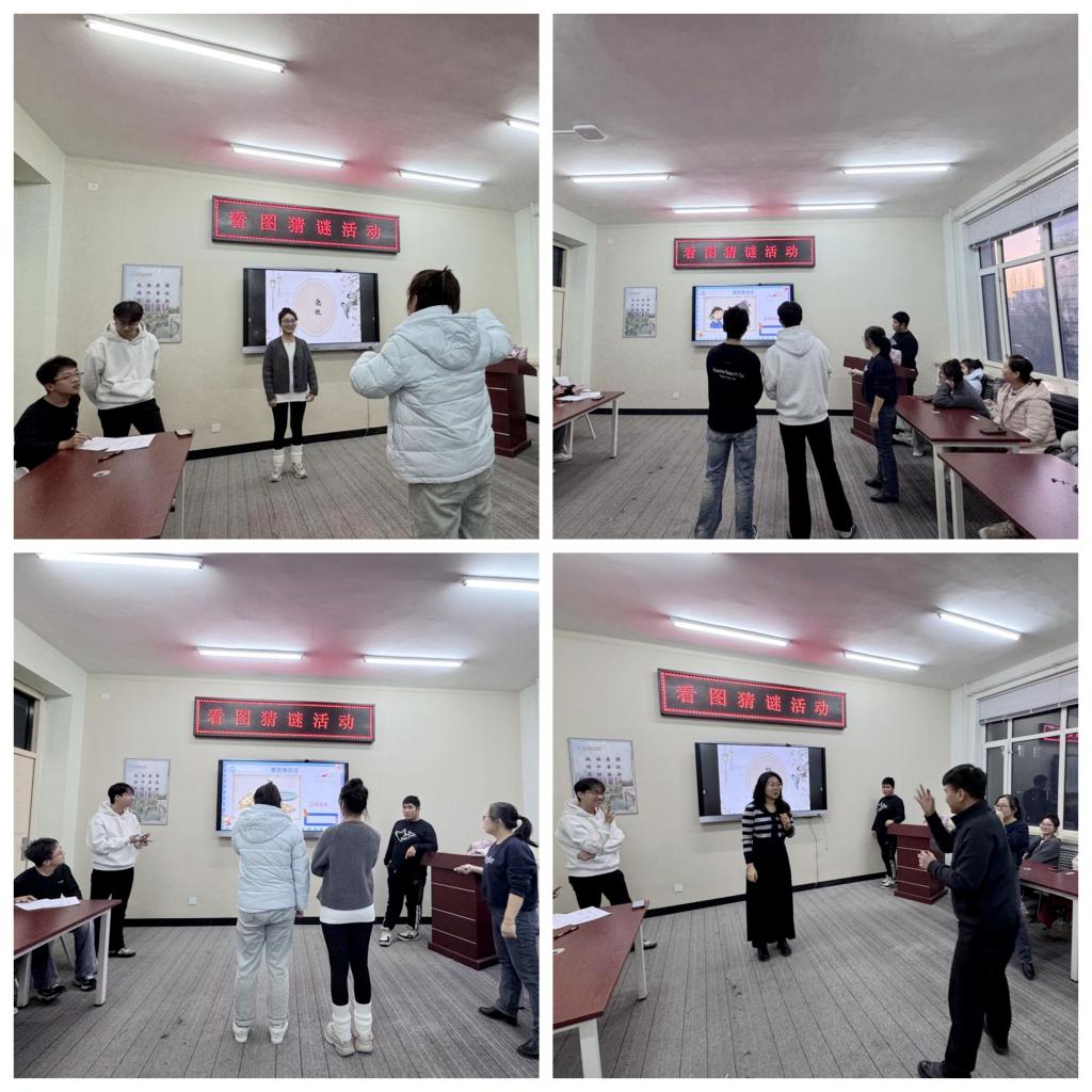 本次活动旨在丰富教职工的业余生活,增进团队情谊。赛制设计别出心裁,巧妙融入了文化底蕴与团队协作要求。初赛 “看图猜成语” 环节,各队队员或紧盯屏幕、凝神思索,或灵光一闪、对答如流。一张张趣味横生的图片,既是成语内涵的巧妙缩影,也是对大家知识储备与瞬时联想能力的双重考验。