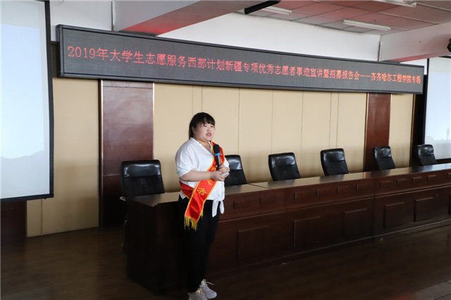 4月10日下午,在图书馆501报告厅,学院团委举办2019年大学生志愿服务西部计划新疆专项优秀志愿者事迹宣讲暨招募报告会,来自各系的300余名师生参加报告会。