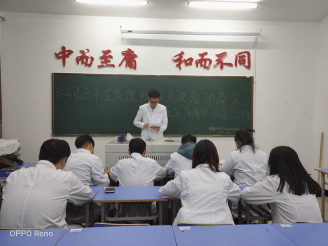 11月14日,健康护理与食品专业学生党支部书记姜宏伟组织学生党员学习《习近平在庆祝中国人民政治协商会议成立70周年大会上的讲话》,大家纷纷表示要增强“四个意识”、坚定“四个自信”、做到“两个维护”。