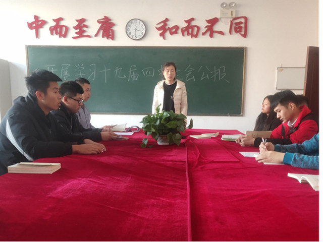 11月13日,机械专业学生党支部组织全体党员和入党积极分子学习党的十九届四中全会公报,并进行形势政策教育。支部书记王虹在学习过后为大家作党的十九届四中全会公报学习辅导,重点解读了公报中“制度”“治理”等关键词,帮助大家了解掌握我国国家制度和国家治理体系的13个显著优势,加深对当前形势、政策、任务的认识和理解。