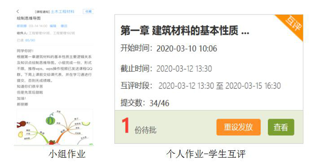 郝老师在课后通过学习通、QQ群在线答疑,布置小组作业、个人作业、测验和小组讨论等学习任务,让学生再次巩固教学内容,最终掌握和形成知识单元体系。对部分作业,采用教师评价与同伴互评结合的形式,让学生在互评过程中对知识进行深加工与思考。