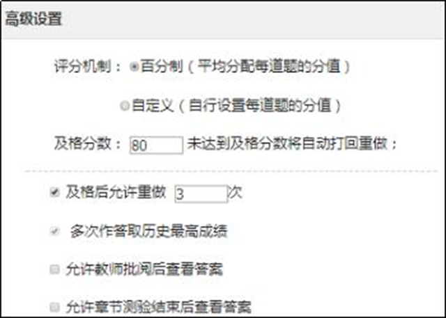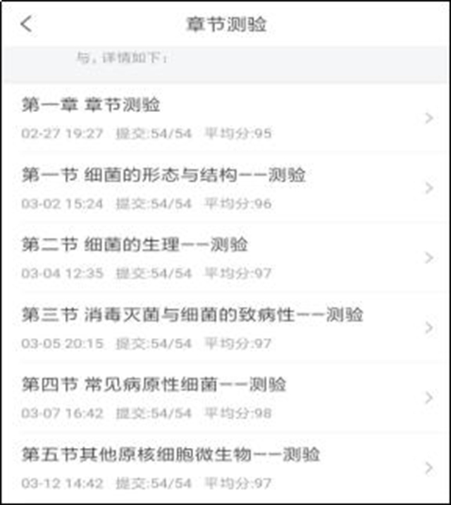 章节测验可重复进行,直至通过。若是通过测验仍对成绩不满意,可再次测验。闯关后的测验机会有3次,成绩取测验中最高成绩记录为最终成绩。