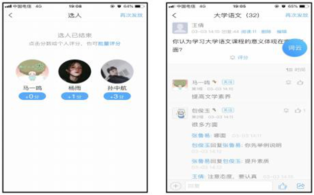 二是活动参与注意灵活。设计学生的活动时根据专业和班级的学生特点预判活动效果,灵活选用抢答、抽签、测验、随机点名、主题讨论、PK 挑战等形式。