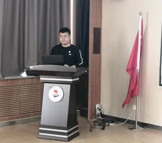 财务处张金波老师以《努力工作,幸福生活》为题,讲述了自己参加工作24年来从国企到私企的工作经历,分享了来校6年来的成长与收获,并分别通过业务不精通、工作中存在想当然等案例深入剖析自己的不足,对今后如何立足工作岗位,实现自身价值做出规划。