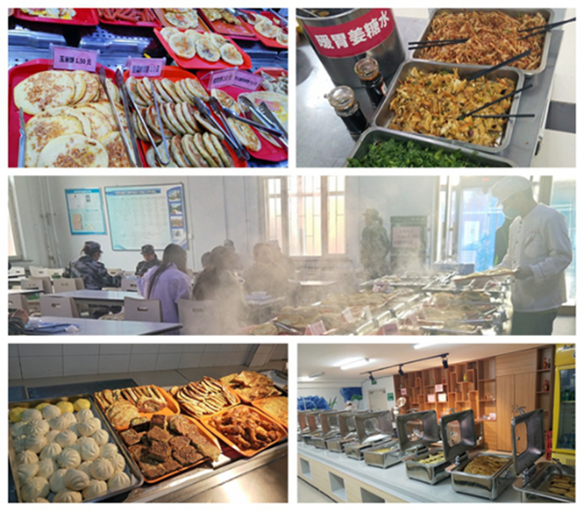 如今的校园食堂不仅满足住校学生们的就餐需求,也吸引家在附近的老师前来用餐。学校基建办的崔晓东和爱人是学校的双职工,家住校园北门附近。他们说,每天早晨全家三口人从北门进来就近用餐,中午两口子则在离办公室近的食堂午餐。来这里的理由是:饭菜丰富、美味、卫生。