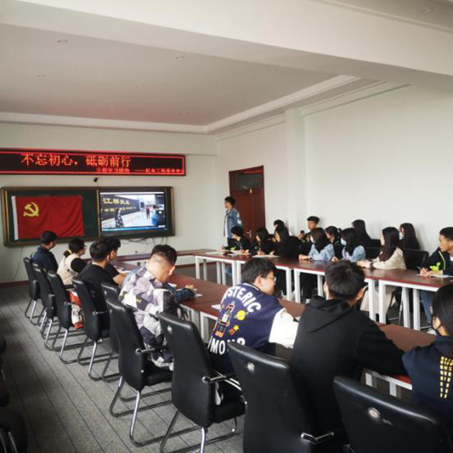 为迎接党的百年华诞,贯彻落实好“四史”的学习教育,4月1日下午,机电工程系组织开展“不忘初心、砥砺前行”红色主题教育活动。本次活动分为线下和线上两部分。党总支书记甄彩霞组织全体党员教师到和平广场参观学习,追寻革命先驱的足迹,缅怀革命先烈的丰功伟绩,坚定理想信仰,锤炼党性修养。学生党员和团员同步在图书馆608,通过腾讯会议观看直播。