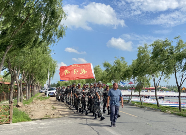 早上6点教官们从学校出发,历经4小时到达目的地查罕诺,拉练途中,大家一路高唱军歌、呼喊口号,随行老师提醒学生注意安全行进。虽然同学们的汗水早已浸湿了衣衫,不少教官小腿酸痛,但他们一路上克服疲惫与疼痛,在行军途中始终保持高昂士气、饱满热情。到达目的地进行进行野炊,同学们参观风景,各班拍照留念,休息过后,下午2点30分教官团原路返回。