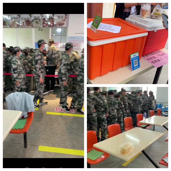 为保证早餐供应,餐厅员工每天3点钟到岗开始备餐,6点半开始经营。为解决学生早上时间紧,食堂还在门口设立流动窗口,在售餐点上打出提示语“如果你要是赶时间的话,可以打包带走”,方便学生即买即走。餐厅每天备30—50份的0.5毛钱套餐,套餐内包含馒头和粥。0.5元早餐套餐深受学生好评,每日早餐档口0.5元套餐一推出,学生争先购买,供不应求。学生们高兴地说:学校太好了,为学生考虑细致周到。