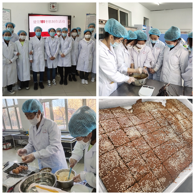 为进一步加强学生动手能力,10月25日,健管191班在一号教学区3102食品营养与工艺学实训室,邀请专业教师相玉秀现场指导同学制作枣糕,健管191班15名同学参加此次活动。枣糕作为一种制作简易,口味独特的小吃,一直深受广大学生的喜爱,此次能亲手制作,同学们都热情高涨、积极参与。在打鸡蛋、称重枣沙、搅拌面粉、装入模具几道工序中,同学们分工明确、相互协助、配合默契,现场气氛十分活跃。在大家齐心协力下香喷喷的枣糕新鲜出炉。此次活动旨在丰富学校学生的校园生活,通过手工制作美食,促进学生之间的情感交流和互动,让学生感受到学校大家庭的温暖,在增强动手能力的同时培养学生养成热爱劳动的好习惯。