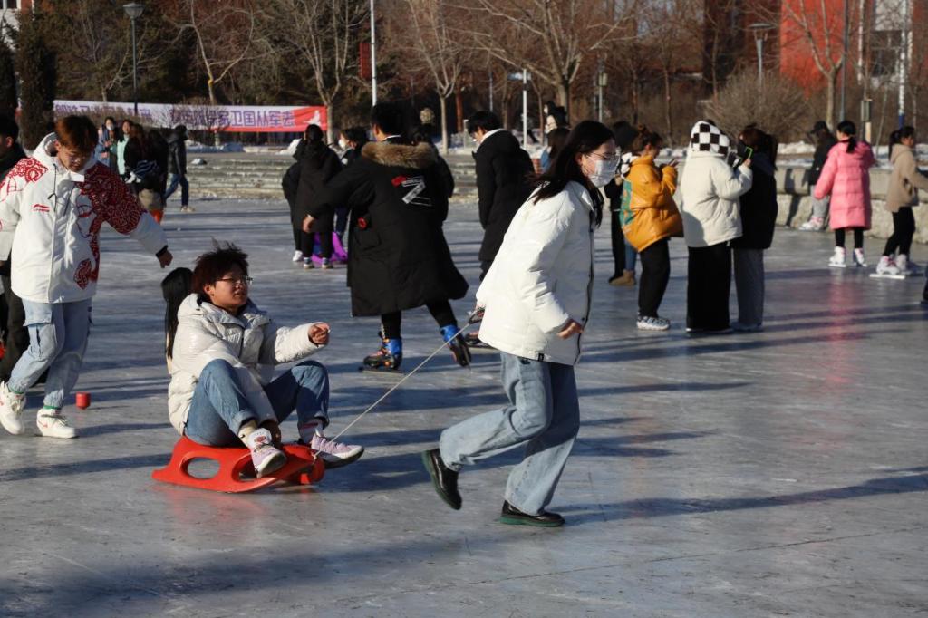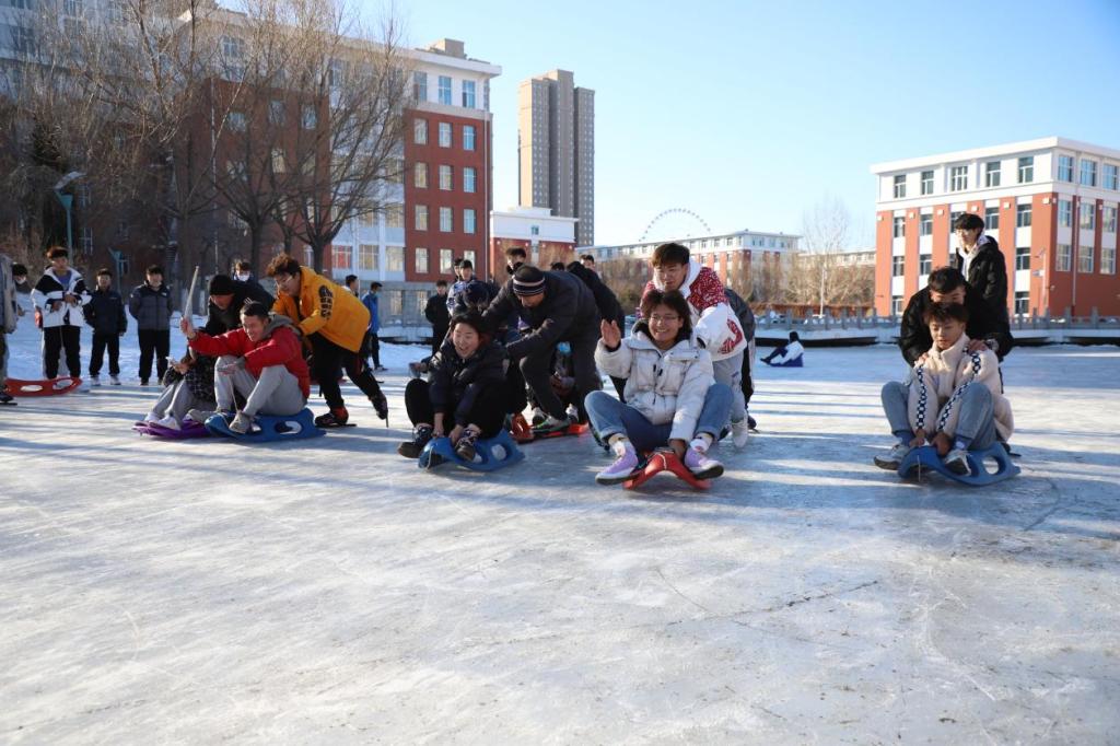 本学期冰上体育课包括:抽冰嘎、滑冰、冰爬犁等项目。冰上体育课不仅给学生带来了快乐,更是让来自南方的同学满足了就读于北方院校的新奇感,加深了师生对于冰雪运动的理解和认识,培养了学生不畏困难,勇于拼搏的顽强意志。
