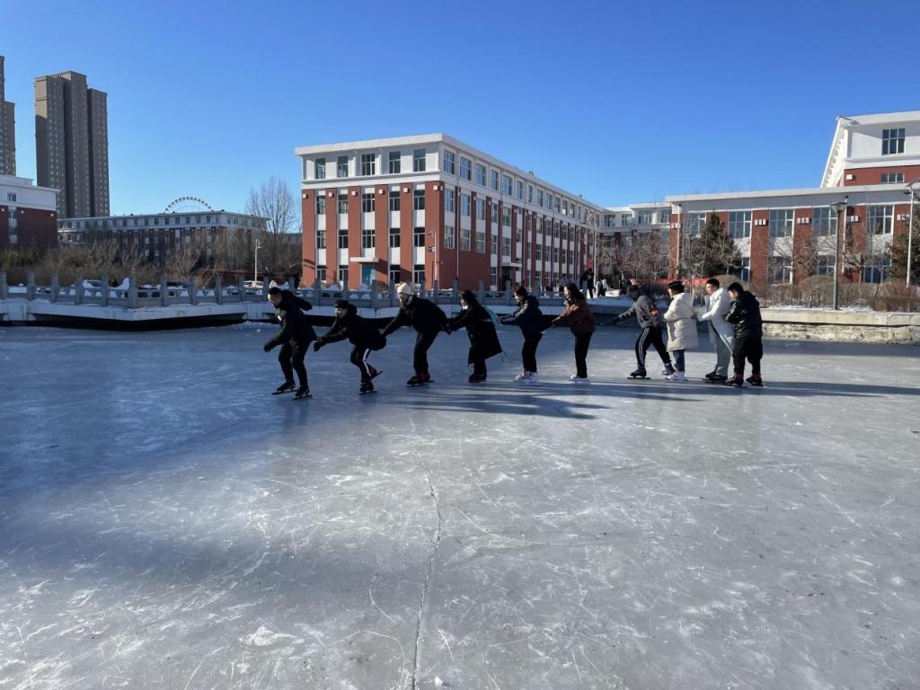 为进一步落实《关于全面加强和改进新时代学校体育工作的实施意见》文件精神,打造校园冰雪特色运动品牌,促进学生全面发展,基础部开展冰上体育课,让学生体验冰上运动的独特魅力和乐趣。