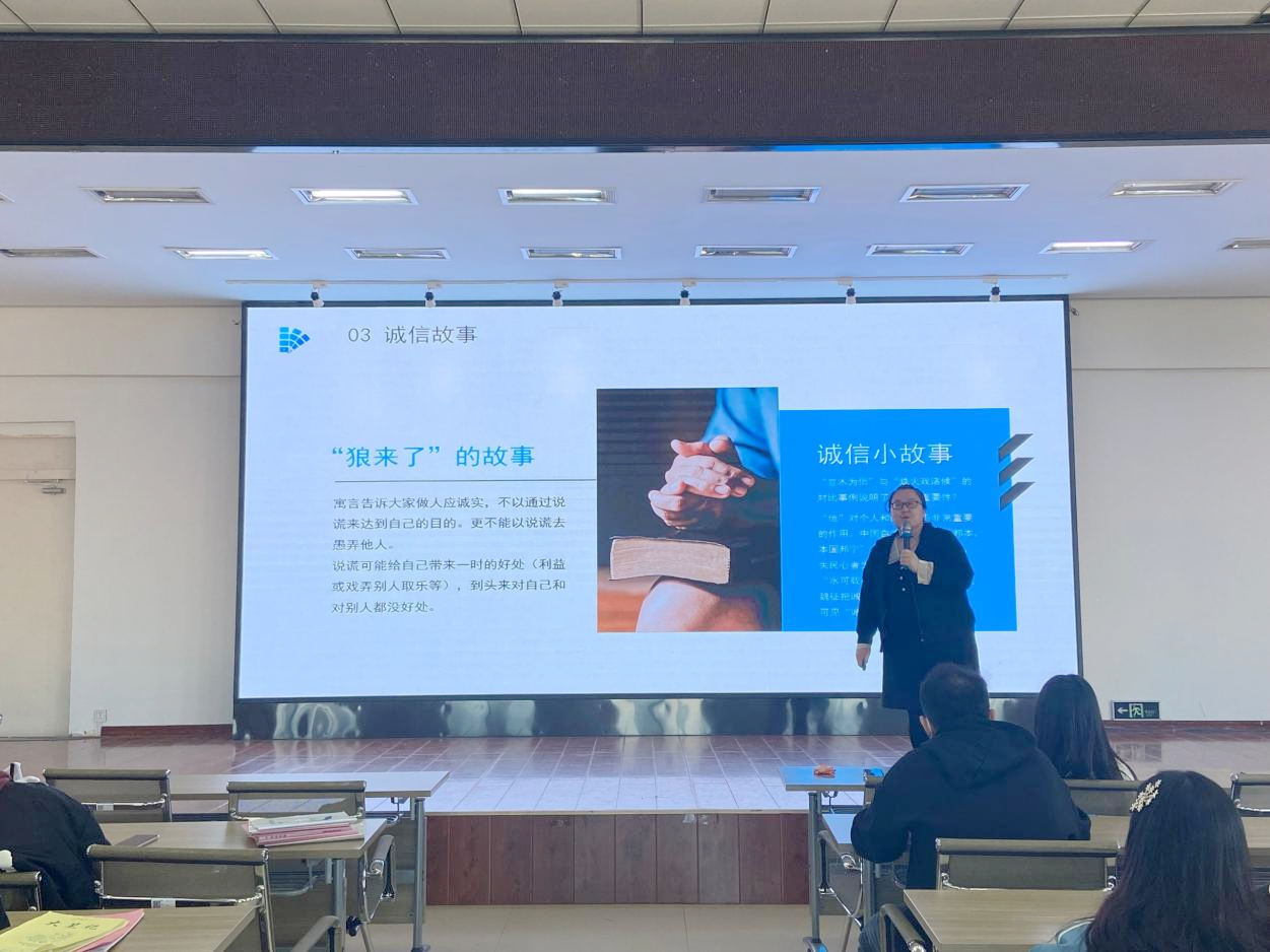 健康与护理系杨嘉琪老师通过视频的方式为学生播放生活中讲诚信的事迹,令同学们为这些人的诚实美德而感动。杨老师的讲解,引导学生树立诚信意识,助力学生们道德素养的提高。