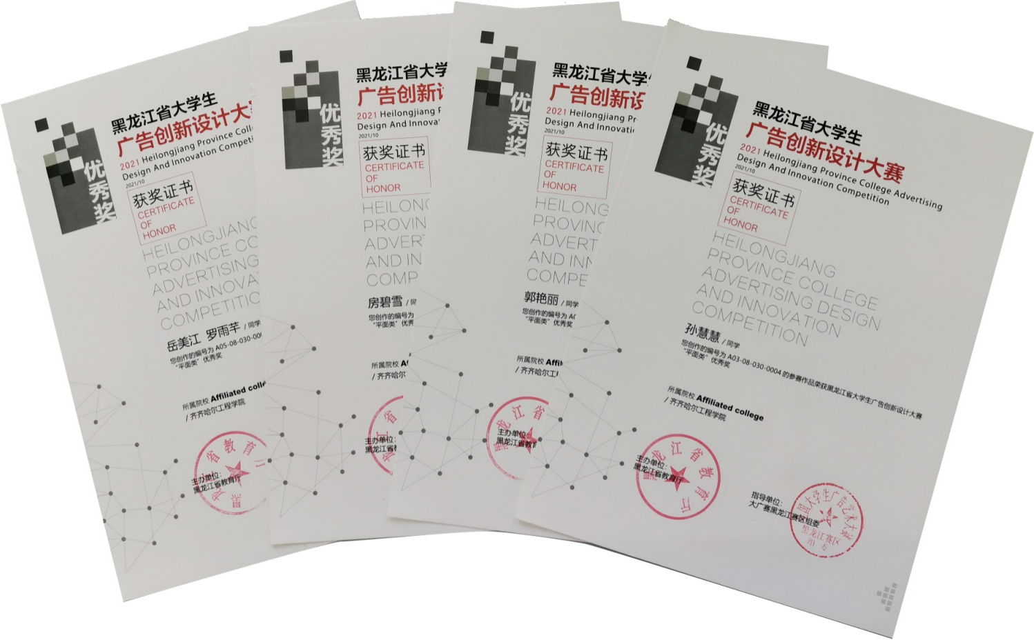 近日,全国第十三届大学生广告艺术设计大赛奖项揭晓,Beat365信息工程系视觉2019级孙慧慧、房碧雪和视觉2020级郭艳丽、岳美江、罗雨芊五名同学的作品入围省赛并获得优秀奖。