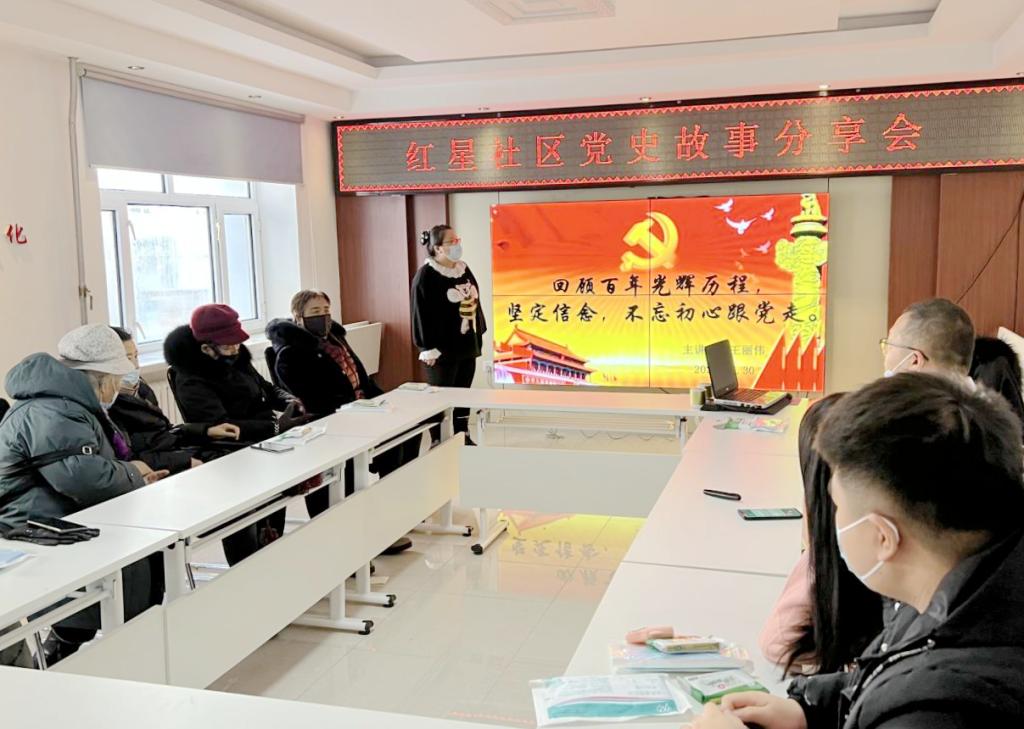 随后,王丽伟从党的三个重要的历史时期出发,带领社区居民回顾党的光辉历程,图文并茂地讲述了党的百年奋斗历史,所取得的辉煌成就。