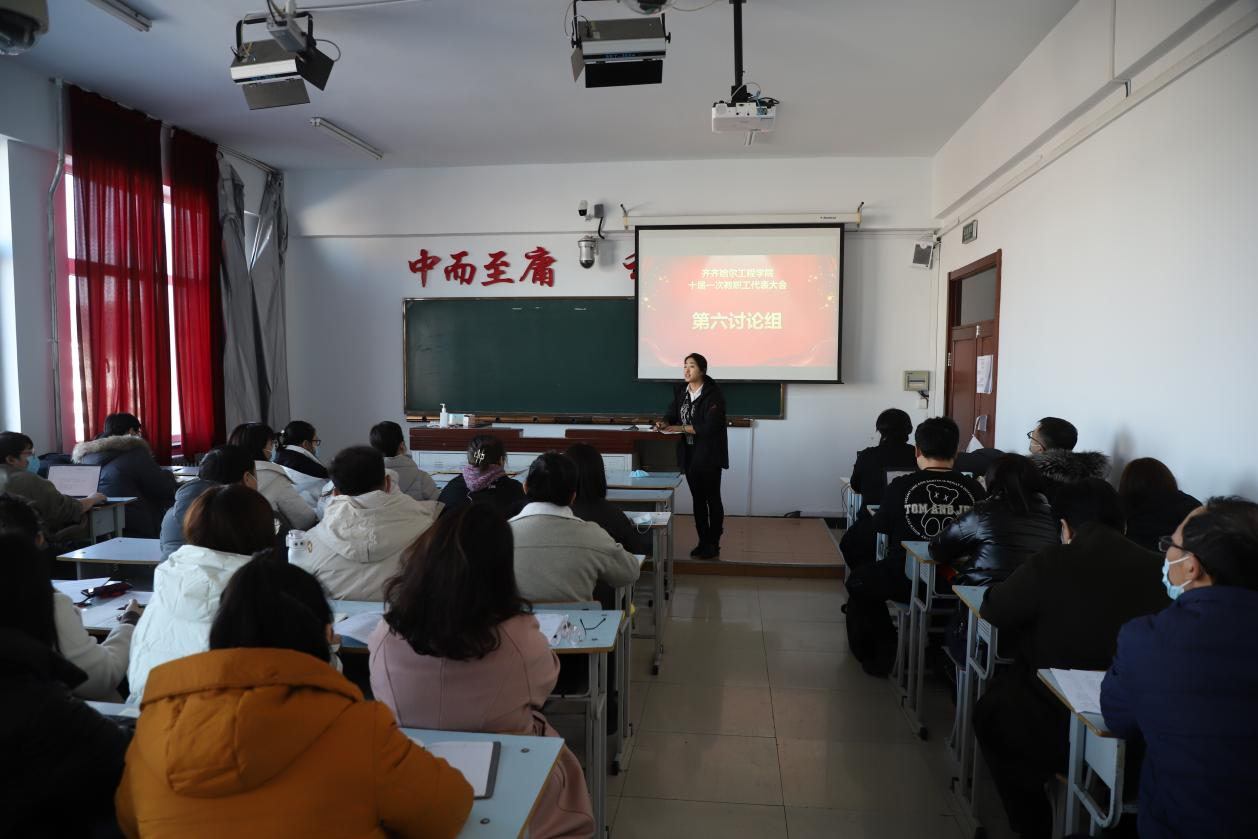 第三讨论组组织基础部和思政教学部的教职工对学校行政工作报告展开深入研讨。教职工们表示,通过报告能够看出学校快速的发展,2021年教职工们在教学改革、应用型课程建设等方面取得了令人瞩目的成绩,全体教工欢欣鼓舞。2022年,教工们将继往开来,立足岗位,做好本职工作,为学校发展贡献力量。讨论中,大家还就学校对教师培养培训、组织观摩课、打造五级课堂等方面提出自己的建议,为学校发展积极建言献策。